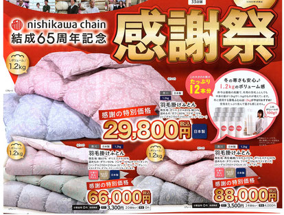 なお、感謝祭期間中はチラシ掲載の羽毛掛けふとんご購入の方に3つの特典もご用意してます。